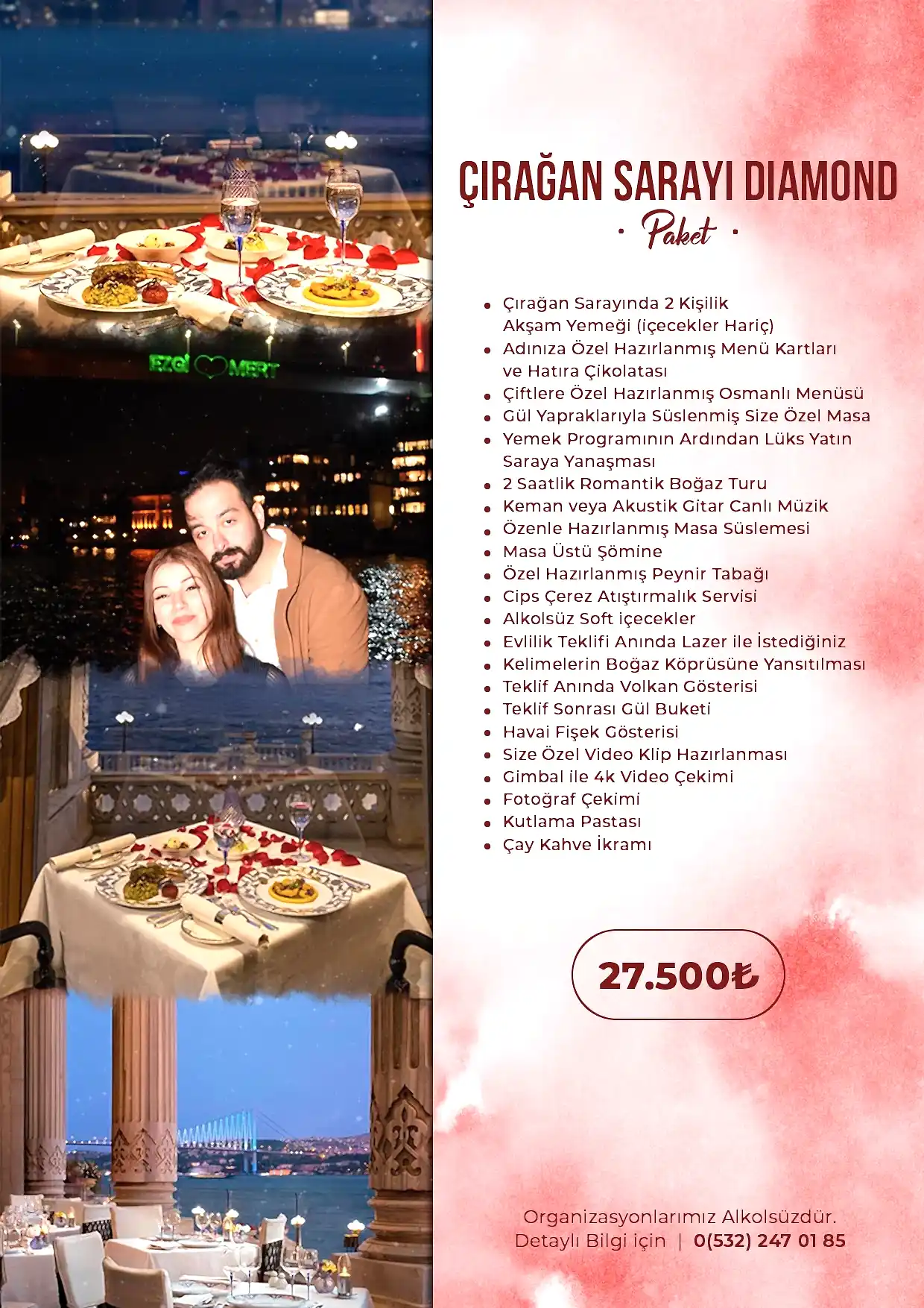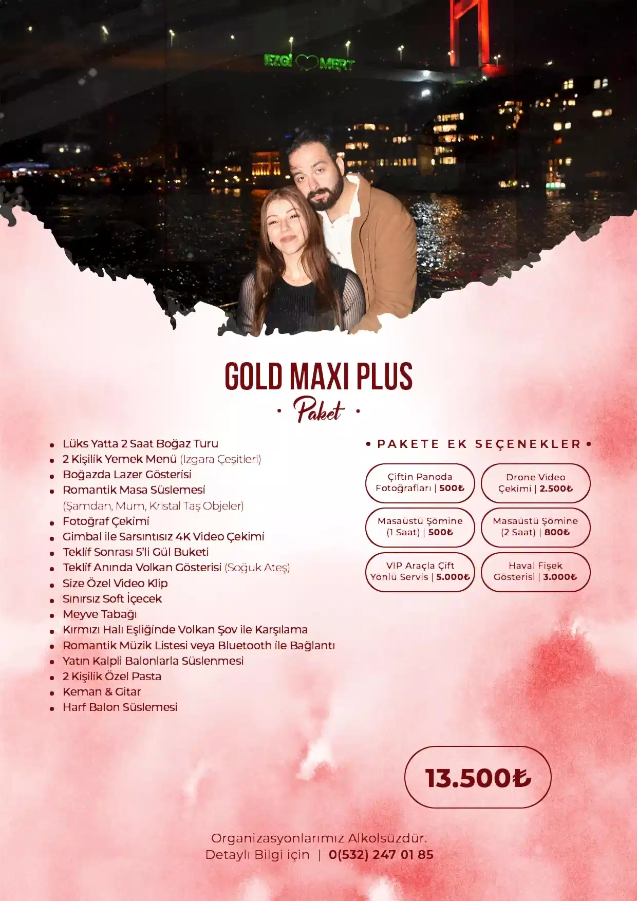 Evlilik teklifiniz, hayatınızdaki en özel anlardan biri olacak ve bu anın kusursuz olması için her detayın mükemmel olması gerekiyor. Biz, sizin için tamamen kişiselleştirilmiş evlilik teklifi paketleri sunuyoruz. İster romantik bir akşam yemeği, bir tatil kaçamağı veya eğlenceli bir etkinlik planlamak isteyin, her tercih için özel çözümler sunuyoruz.Paketlerimiz, partnerinizin zevklerine ve sizin ilişkinize uygun olarak özelleştiriliyor.