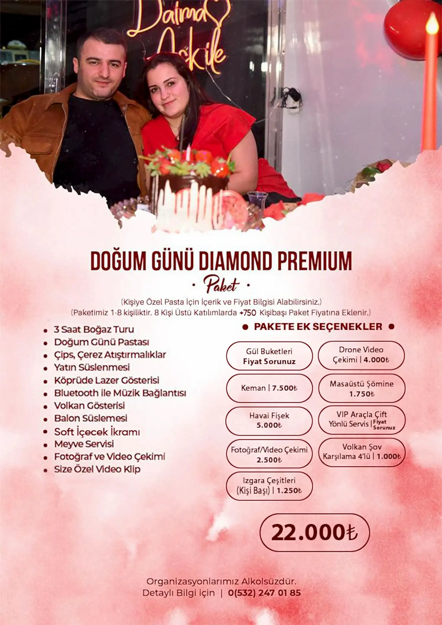 Boğaz’ın eşsiz manzarasında profesyonel fotoğraf ve video çekimleri yapılarak, doğum gününüz ölümsüzleştirilebilir.